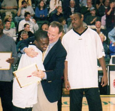 At this point Morgan Wootten, Pete's DeMatha Catholic high school coach, and one of but two high school coaches in the Naismith Basketball Hall of Fame, and Pete spoke. Morgan said that if you are going to coach, you need to come back to DeMatha.